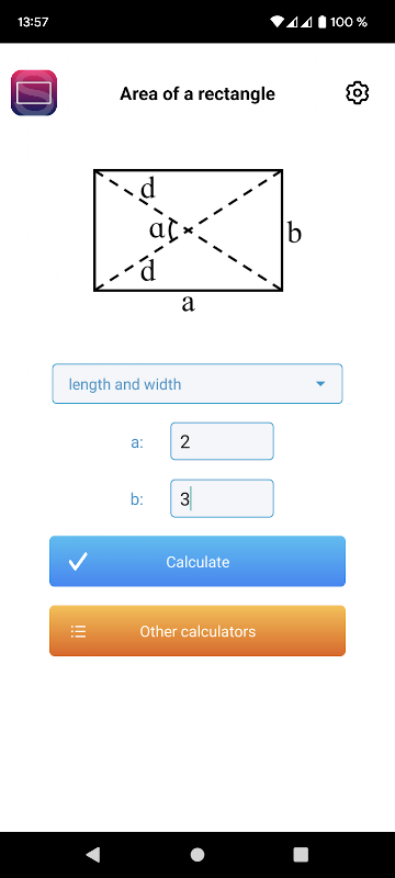 Calcolatrice area consente di trovare una superficie di diverse forme geometriche, come il quadrato, il rettangolo, parallelogramma, trapezio, rombo, cerchio, triangolo, con diverse formule.
