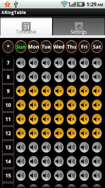 Ogni ora, volume del telefono di controllo Weely con calendario
