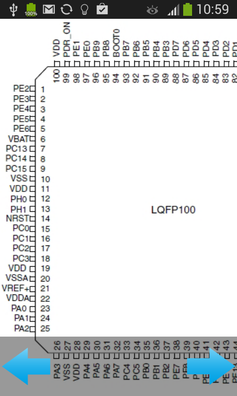 - STM32 microcontroller family description (tap "info icon" in the upper right corner),