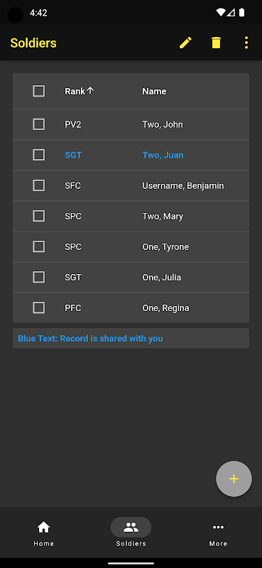 Con tutte queste informazioni, la sicurezza è certamente una preoccupazione. LB utilizza un servizio di database cloud di Google chiamato Firestore per archiviare i dati. Firestore ha un record impeccabile per la sicurezza dei dati e crittografa i dati in viaggio verso il server e sul server. LB ha anche regole di sicurezza aggiuntive in modo che solo tu possa vedere i tuoi dati. Detto questo, è importante che tu ottenga il permesso dai tuoi Soldati (e chiedi loro di firmare una dichiarazione di legge sulla privacy) per inserire le loro informazioni in LB e non inserire più informazioni di quelle che con loro sono a loro agio. Gli unici campi obbligatori in tutti i LB sono Rango e Cognome.
