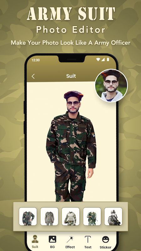 Army Photo Editor ha un'elegante collezione e design di uniformi dell'esercito di fotoritocco.