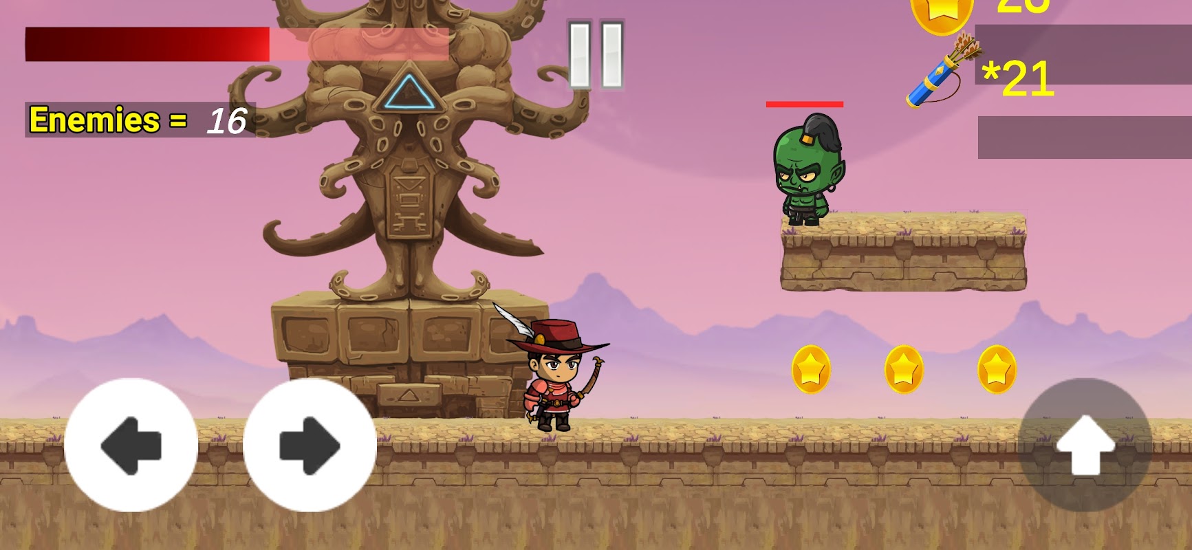 Questo è un gioco d'azione di tipo Arrow. Il maestro delle frecce dovrebbe salvare il regno dai nemici. Puoi raccogliere le monete in ogni missione e acquistare nuove frecce usando quelle monete.