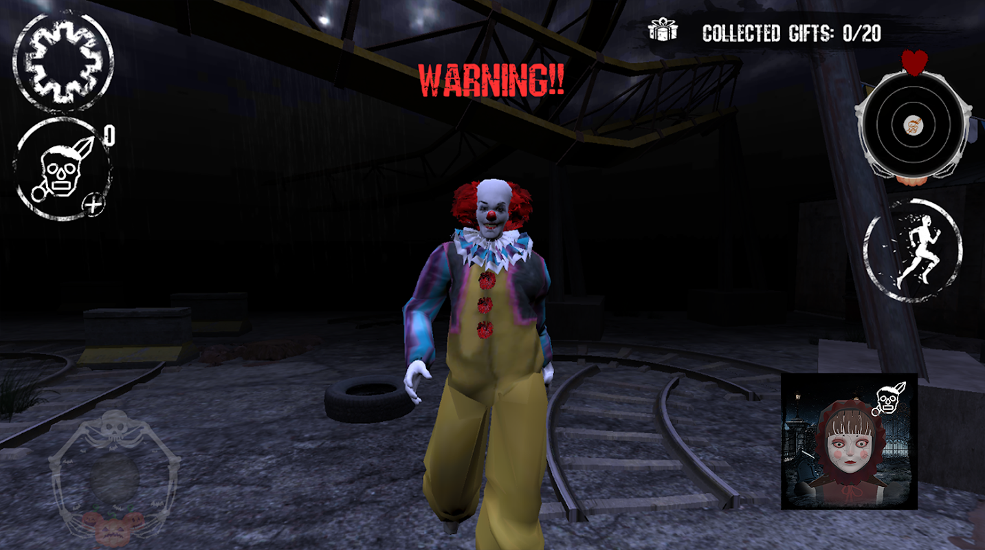 Entra in un mondo dove le risate si trasformano in urla in Art of Terror, un gioco horror mozzafiato che ti mette di fronte ai clown più terrificanti della storia. Sparsi in molteplici luoghi sinistri, da circhi abbandonati a luna park infestati, dovrai raccogliere doni nascosti mentre sfuggi agli inseguitori implacabili dei clown. Più doni raccogli (6, 12, 20 o 30 a seconda della difficoltà), più alto sarà il tuo punteggio... ma più agguerriti saranno i loro inseguitori!