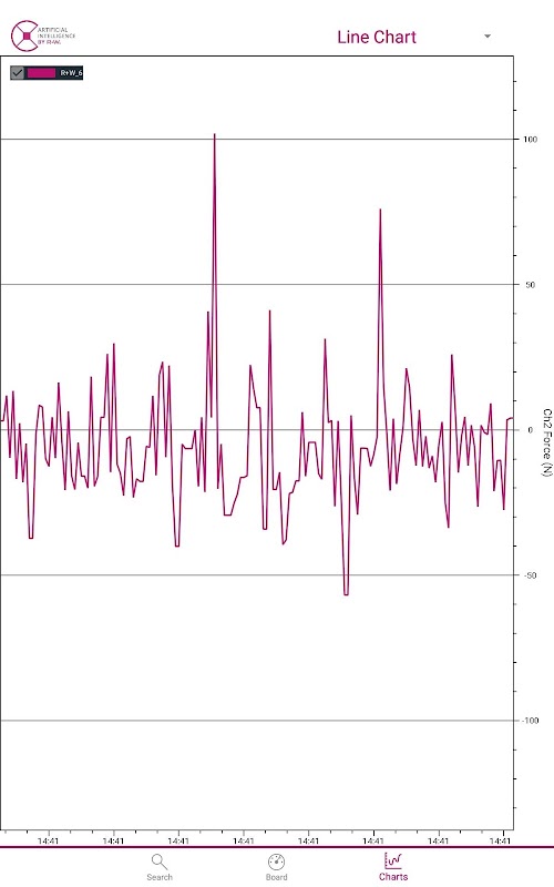 Toccando una variabile misurata, questa viene illustrata in un diagramma in funzione del tempo. Se sono collegati più giunti intelligenti, ciascuno viene visualizzato come grafico separato.