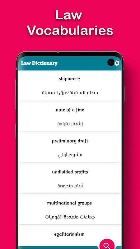 Impara termini giuridici e vocabolario in un dizionario inglese ⇌ arabo molto facilmente.