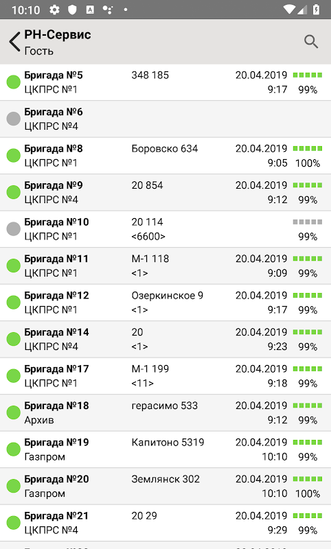 - visualizzazione di un elenco di brigate contenente informazioni sull'oggetto e sul lavoro svolto;