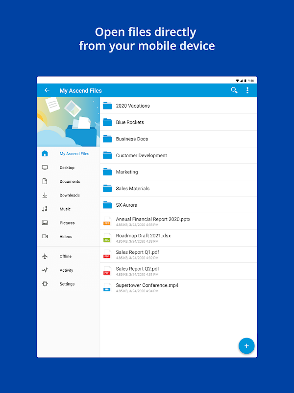 Accedi e condividi i tuoi file Ascend Files mentre sei in movimento.