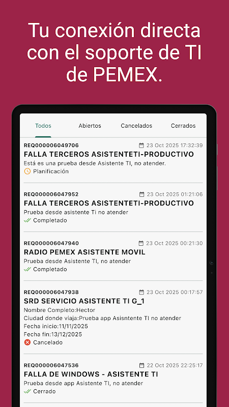 IT Assistant è un'applicazione interna per Petroleos Mexicanos, che mira a fornire agli utenti dei servizi IT segnalazione guasti o la richiesta di nuovi servizi in modo rapido, semplice e da qualsiasi luogo, tramite il vostro smartphone.