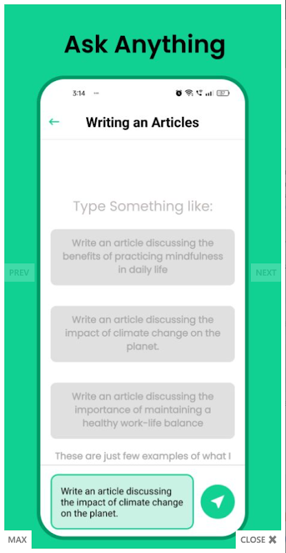 Che tu stia scrivendo, imparando, esplorando idee o semplicemente curioso, Chatbot AI è qui per aiutarti, sempre e ovunque.