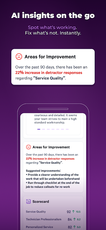 Gestisci l'esperienza cliente dal tuo iPhone o iPad. Raccogli e rispondi istantaneamente al feedback dei clienti con una piattaforma di gestione dell'esperienza cliente basata sull'intelligenza artificiale. Progettata per favorire l'azione, AskNicely suggerisce aree di interesse, opportunità di miglioramento e ti aiuta a definire obiettivi aziendali per far crescere la tua attività.