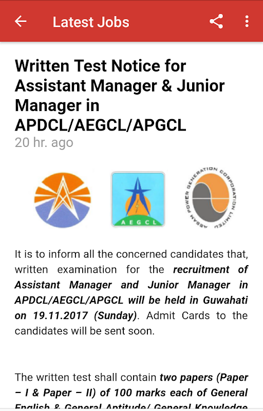 Widely known in the North East India, AssamCareer.com is proud to provide its services in a new dimension via an Android App. Hope everyone will like our app.