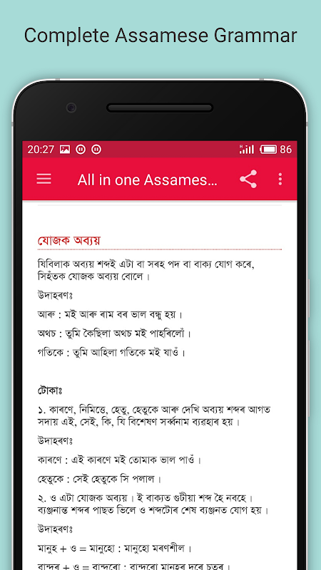 All the major and important topics of Assamese Grammar are included with this app along with various Assamese Language tools.
