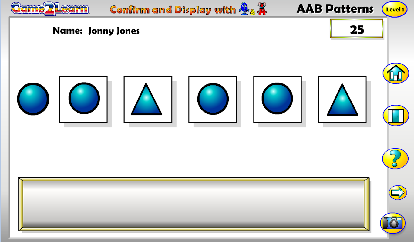 Assessing AAB Patterns with Q&A also includes a number of 'just for fun' brain games that reward children for completing each assessment task while breaking the continuous assessment cycle and its associated anxiety.
