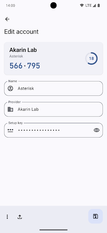Asterisk è progettato con Material You e realizzato con la tecnologia moderna per integrarsi perfettamente con il sistema Android. Inoltre, consente la personalizzazione del suo aspetto. Dì addio agli autenticatori con design obsoleti.