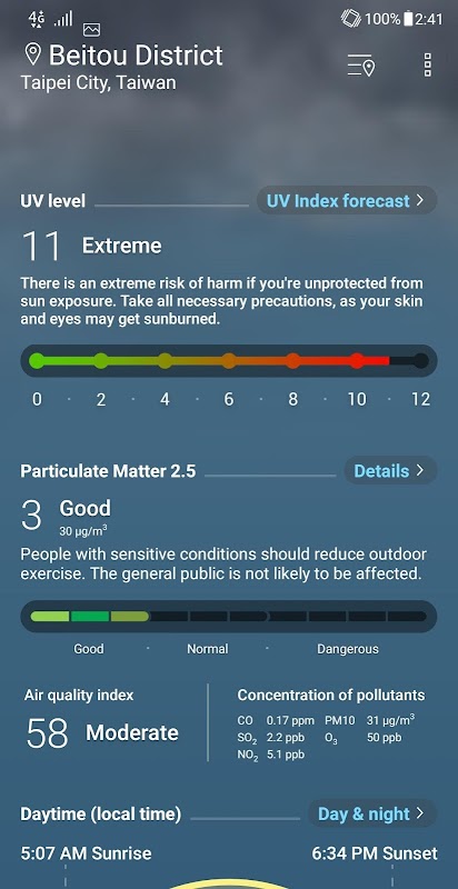 - regioni di Taiwan / Cina: Fornisce Pollutant Standards Index (PSI) con i dati in tempo reale su PM2.5 e altri inquinanti atmosferici