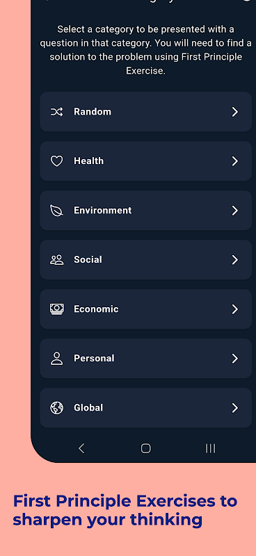 • Esercizi sui Primi Principi: rafforza il tuo pensiero critico con esercizi quotidiani pensati per allenare la tua mente. Ricevi feedback istantanei tramite intelligenza artificiale sull'efficacia, la creatività e la qualità dei tuoi approcci di problem-solving.