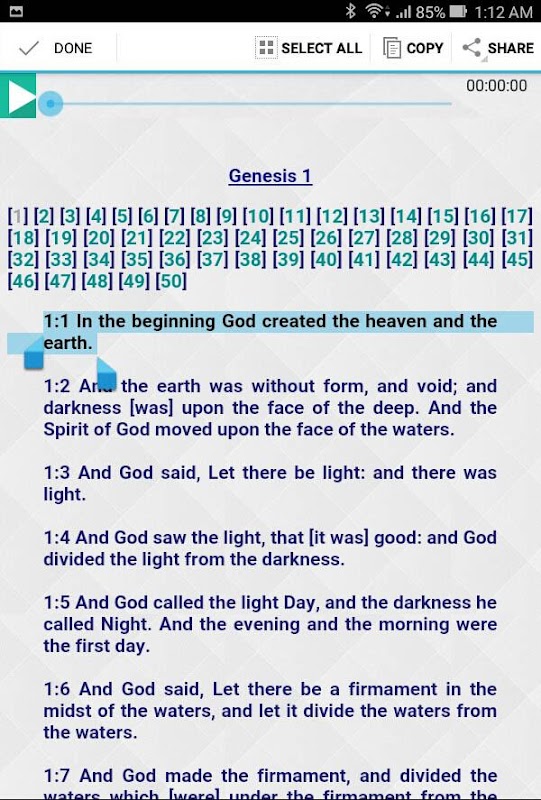 4. Audio Bibbia permette inoltre di zoom, la copia e la condivisione di versi che ti piace