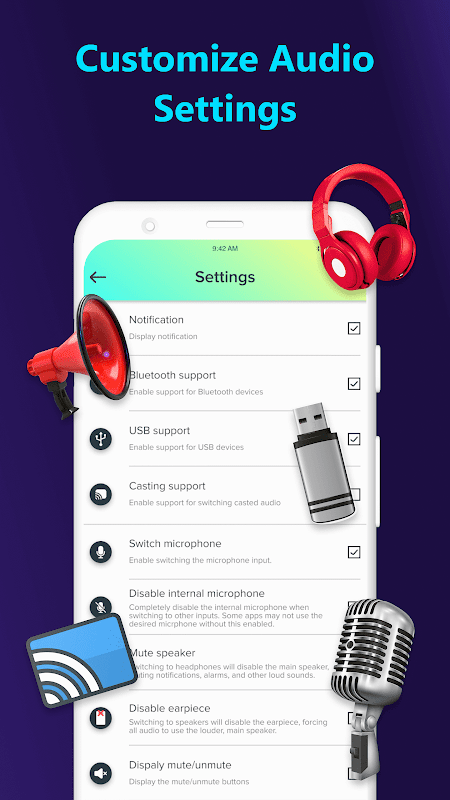 L'app Audio Output Switch ti aiuterà ad abilitare e commutare l'uscita audio su cuffie, altoparlanti o altri dispositivi di output. L'altro dispositivo di output supporta Cast, Bluetooth e USB.