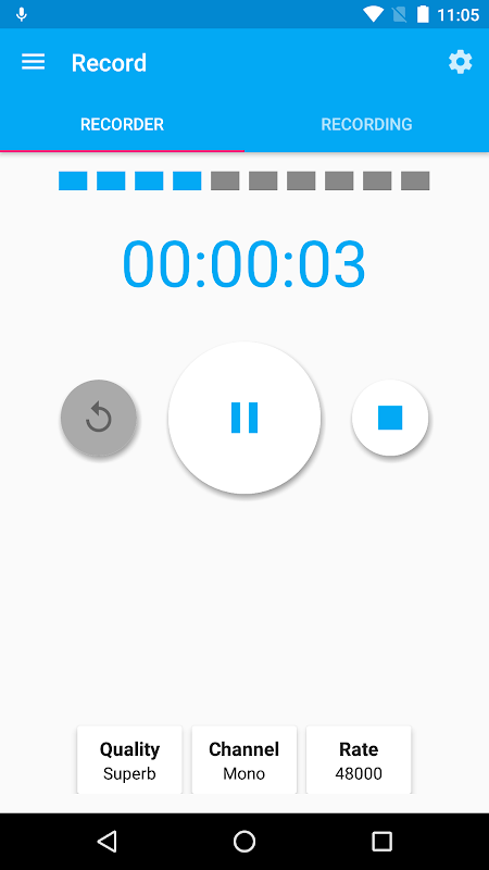 Advanced Audio Recorder (aka Audio Recorder e Editor) registra e modifica di file audio di alta qualità. E 'l'unico registratore su Android che permette di riavvolgere durante la registrazione. Inoltre permette di unire, tagliare, e convertire i file audio, mixare due file audio, aumentare o ridurre il volume di registrazione, aggiungere eco, regolare il tono e la velocità.