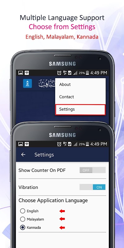 Questa applicazione aiuta a leggere la maggior parte dei Maulid, Dikr, Dua, Swalath, Baith, Malappattu ecc ..
