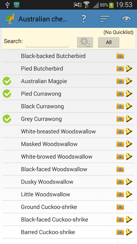 This is one of a series of Birding Checklist applications for Android mobile phones and tablets. There are applications for Australia, New Zealand, United States (excluding Mexico and South America), Western Palearctic (UK and Europe), the Middle East, Pacific Islands, South Africa, Middle East and Ecuador/Peru/Bolivia.