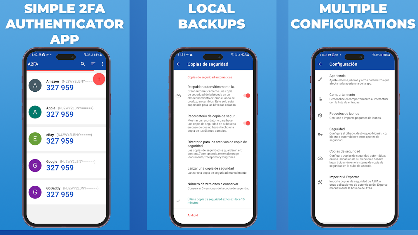 Proteggi i tuoi account in tutta semplicità utilizzando A2FA, l'applicazione di autenticazione a doppio fattore più sicura e semplice. Verifica la tua identità e mantieni i tuoi dati personali protetti dalle minacce informatiche, il tutto in un'applicazione gratuita.