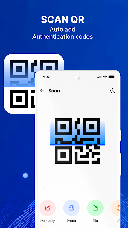 - Aggiungi facilmente account scansionando il codice QR, importando da una foto o da un file e inserendolo manualmente.