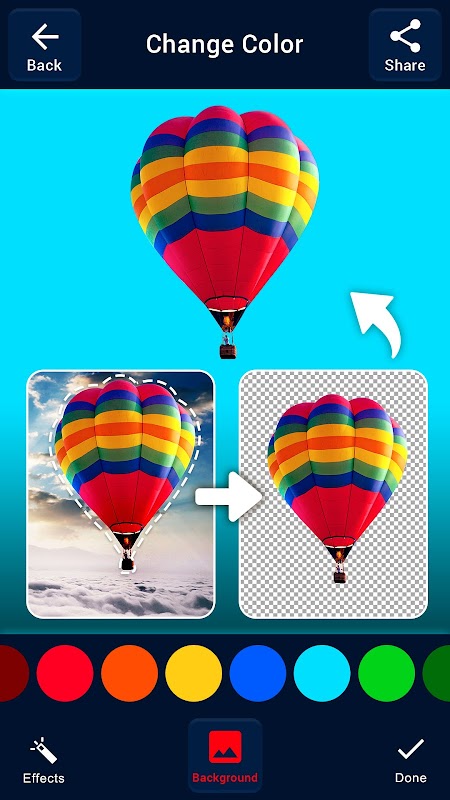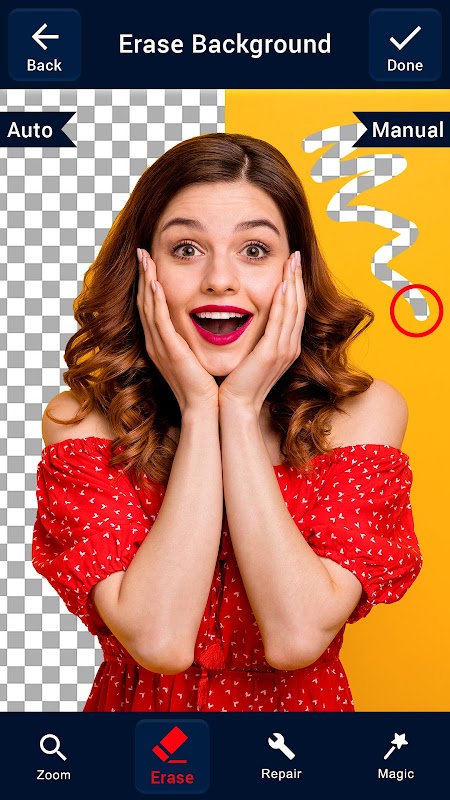 Cambia lo sfondo da qualsiasi immagine utilizzando gratuitamente questa app per cambiare lo sfondo e cancellare. Ritocca rapidamente e facilmente le tue immagini per creare uno sfondo trasparente PNG e utilizza le foto modificate per collage, online, ID foto, social media, ecc.