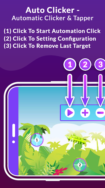 Auto Clicker - Automatic Clicker & Tapper application which has an fantastic way to use clicks with your choice time interval, application allow users use Auto click option which is made easy your touch. just tap on different mode like single target mode or also multi-target mode and make easy touch with one touch on your mobile screen. there is no need a log registration process or log in to use the application, just allow permission and rights from settings before using this application.