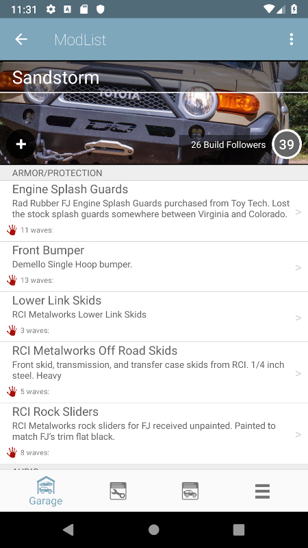 Traccia, condividi e sfoglia le modifiche ai veicoli. Inoltre il monitoraggio del servizio. Condividi la tua costruzione!
