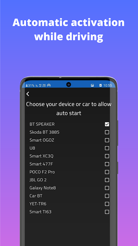 Puoi impostare l'app in modo che si avvii automaticamente quando colleghi il Bluetooth all'auto o alle cuffie.