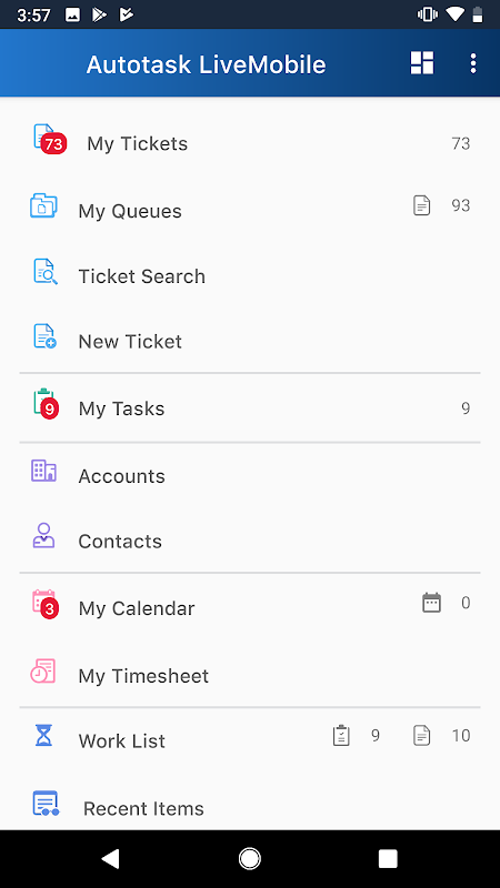 Tutti gli utenti di Autotask PSA hanno accesso in sola lettura ai propri dati con LiveMobile gratuitamente (non è richiesta l'attivazione della licenza). Sarà necessaria un'attivazione della licenza LiveMobile per effettuare aggiornamenti di Autotask PSA dal tuo dispositivo mobile.