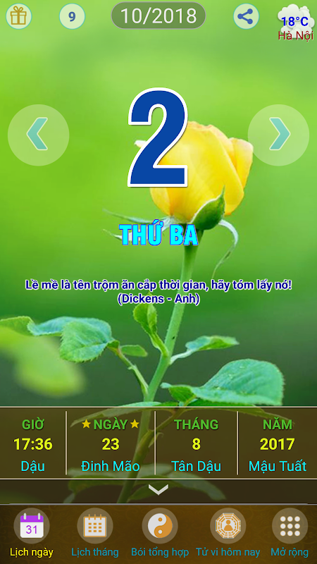 - Mese di calendario: guarda i giorni yin e yang per mese, cambia facilmente altre date, guarda gli eventi dei vecchi tempi a livello nazionale e internazionale.
