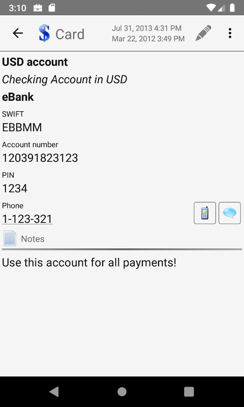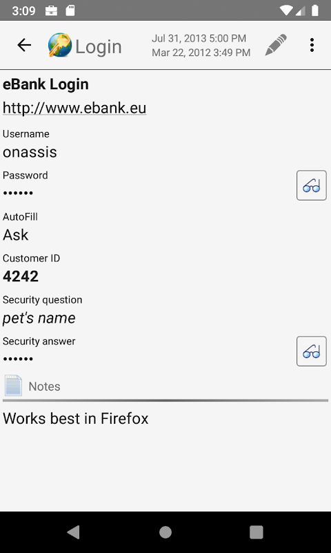 Mantiene le tue note sicure, password, PIN, numeri di conto bancario, informazioni sulla carta di credito, contatti, attività, diari e segnalibri sicuri come in un caveau.