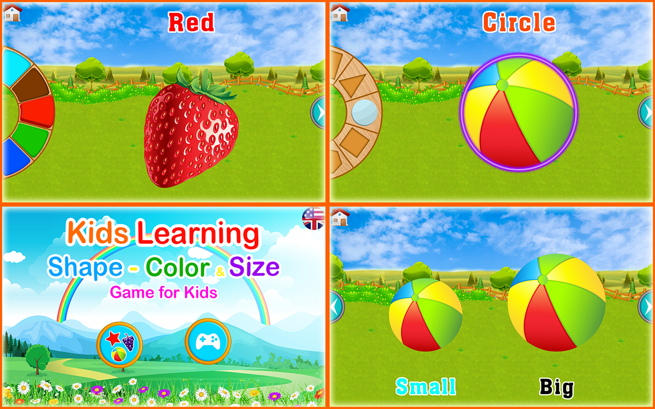 Forma, colore e dimensioni: Kids Play and Learn è un gioco gratuito per imparare forma, colore e dimensioni per i più piccoli, in età prescolare e all'asilo.