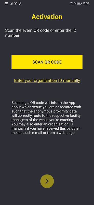 To avoid requiring a separate app for every use-case, each organisation is given an organisation ID which can be used to activate the app.