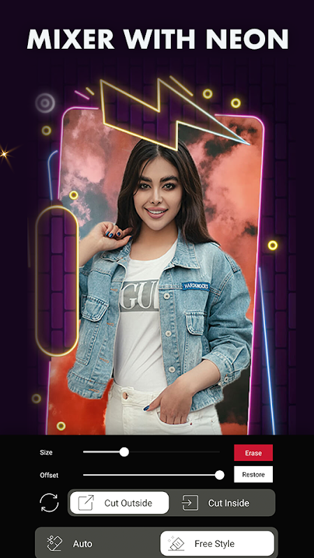 Questa app Background Eraser & Mixer offre due opzioni: cancella lo sfondo dalle tue immagini e mescola uno sfondo diverso allo stesso - Aggiungi sfondo e modelli.