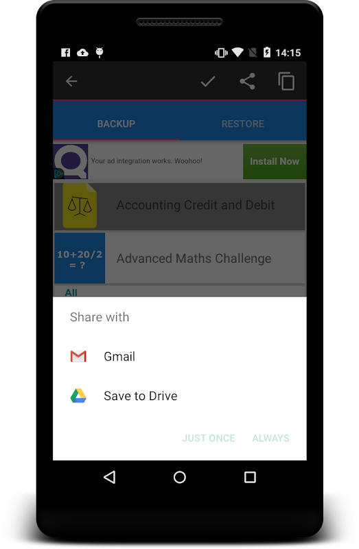 ✔ Are you a person trying different ROMs on your mobile phone OR resetting phone for better performance? Don't you feel installing apps for the second time is a tedious process and you simply waste your bandwidth downloading the apps again, then Backup And Restore is for you.