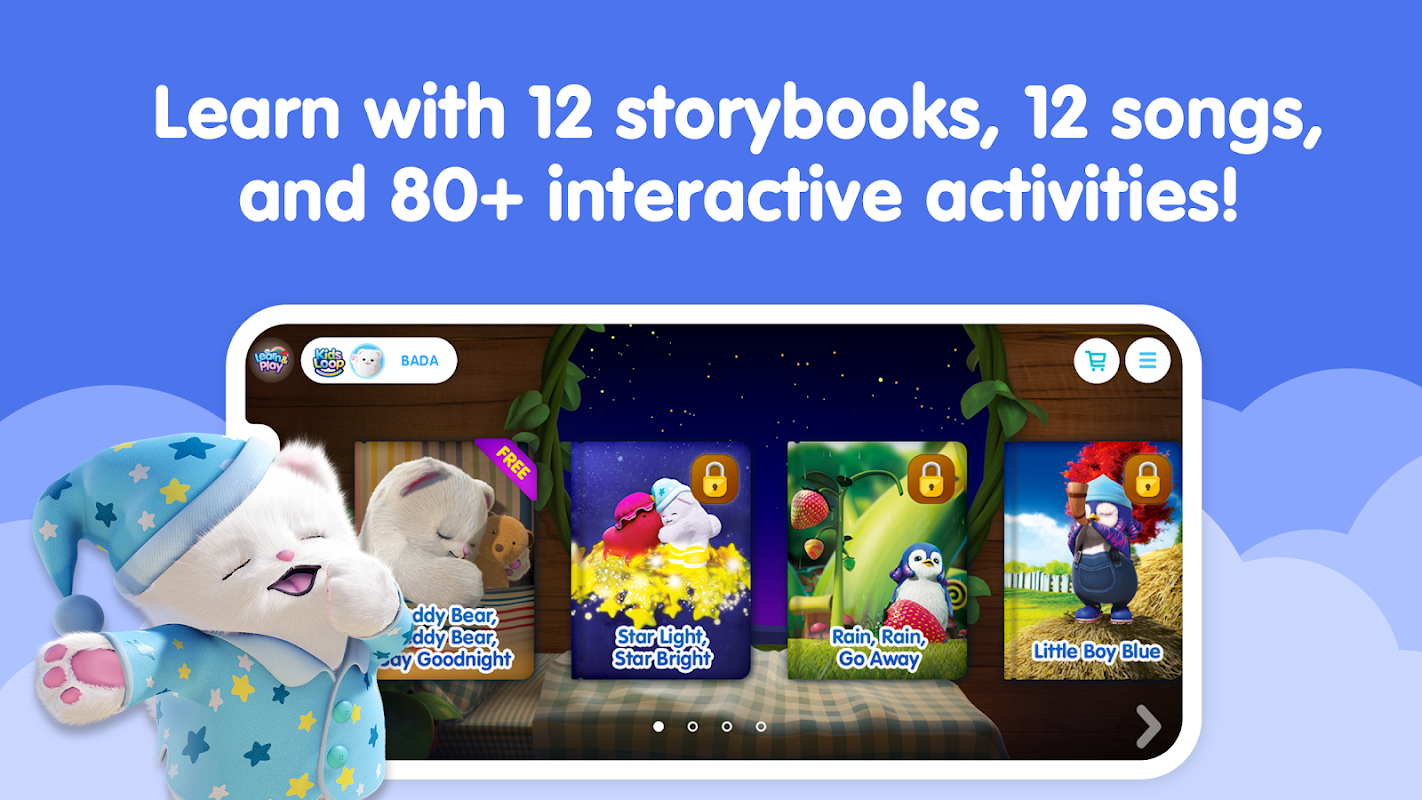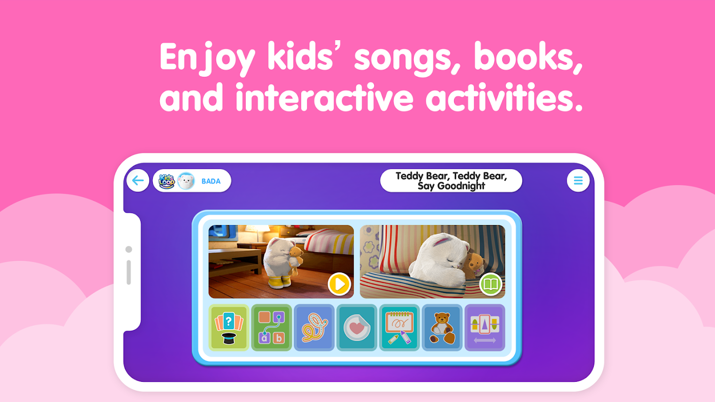 Your child will love learning with Bada and his friends! Fun activities, books, songs, and interactive quizzes enable your child to learn in an exciting new way and also motivate your child to discover a new awareness of English.