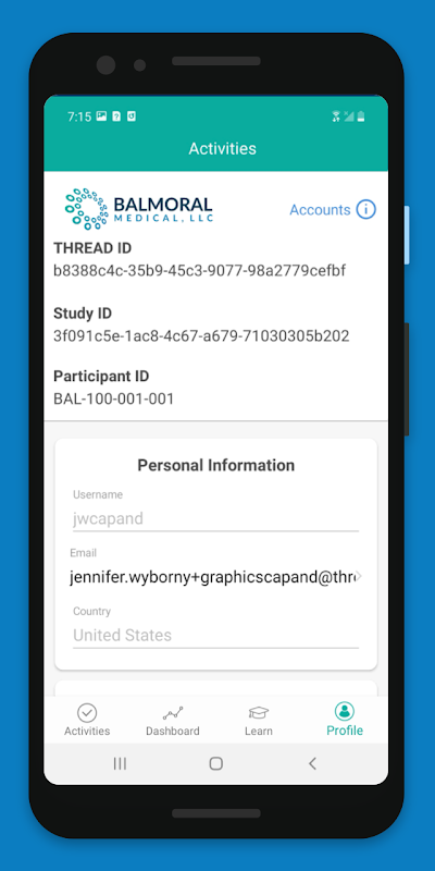 Questa è un'app per i partecipanti che farà parte dello studio multicentrico in aperto a braccio singolo, per valutare l'efficacia di un dispositivo di compressione transdermica. Utilizzerai l'app per completare le attività di studio e avere accesso alle risorse di studio. Le attività includono questionari per segnalare eventuali cadute e tempo di utilizzo della protesi, solo per citarne alcuni.