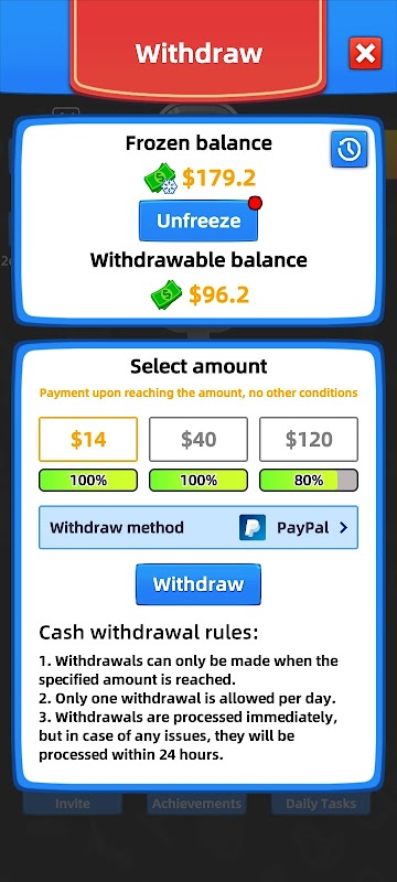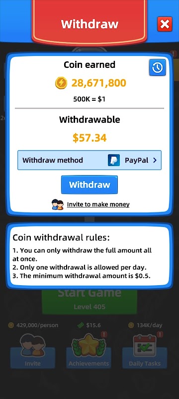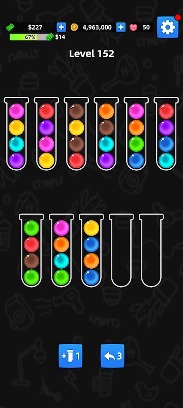 Ball Sort è anche molto gratificante con numerosi compiti e ricompense. Puoi guadagnare denaro virtuale e ritirarlo. Modi per guadagnare denaro virtuale: