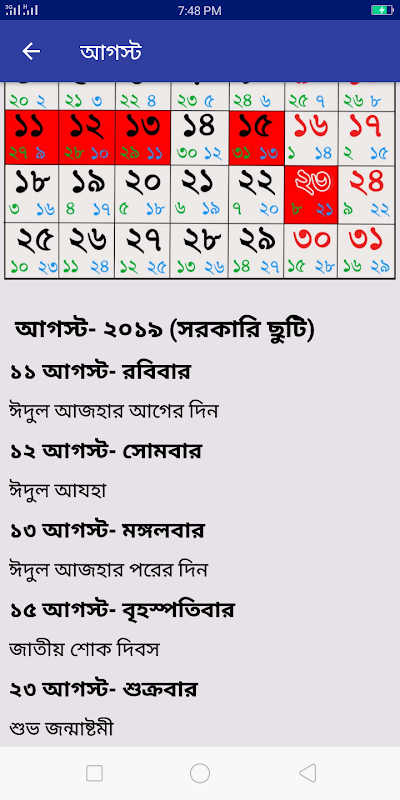 Bangla Calendar 2019 (ইংরেজী,বাংলা,আরবি) 1.1