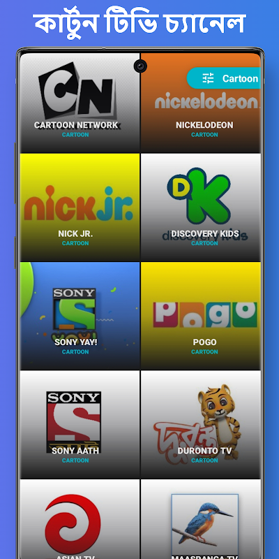 You can also watch live cartoon channels like Duronto TV, Asian TV, Deepto TV, Sony Aath, Sony Yay, Cartoon Network, Nickelodeon, etc. You can watch all of your favorite cartoons on this app. You can request to add your favorite cartoon from this app. We will add your favorite cartoon as soon as possible.