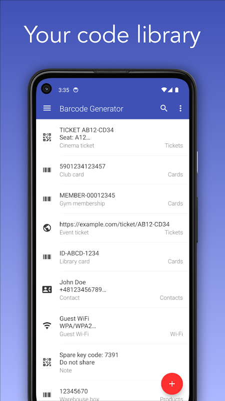 Barcode Generator trasforma il tuo telefono in un portafoglio e generatore di codici a barre offline.