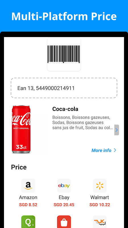 Quando esegui la scansione del codice a barre di un tipo di prodotto, Go Scanner mostrerà il prezzo del prodotto su più piattaforme se il prodotto è presente su più piattaforme. È possibile fare clic per visualizzare informazioni dettagliate.
