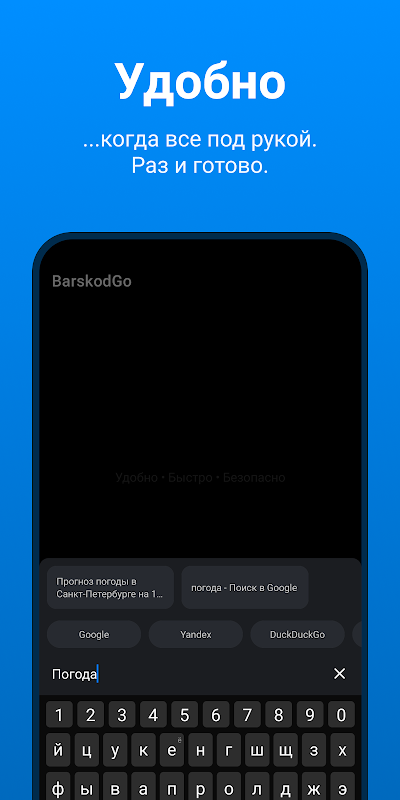 BarskodGo è un browser moderno progettato per tutti coloro che apprezzano il proprio tempo. Un'interfaccia utente ben congegnata ti consentirà di utilizzare l'applicazione con comodità e le protezioni integrate sono già configurate e funzionanti per non sovraccaricarti di impostazioni complesse.
