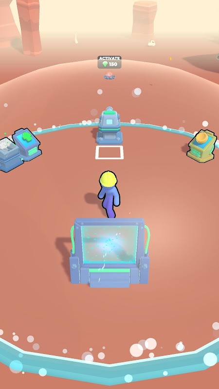 Go down the stairs to the mine and extract valuable resources. Spend them to strengthen your base and upgrade you super gun.