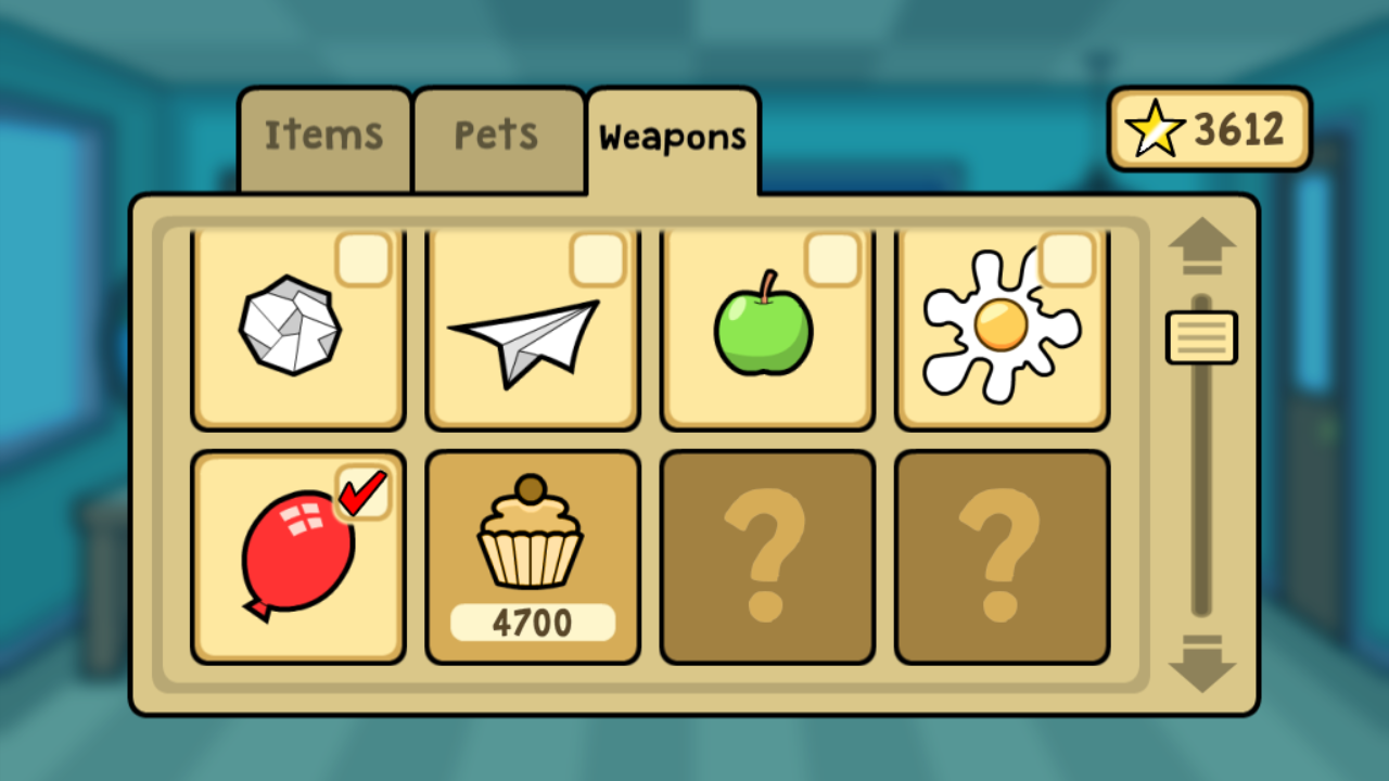 32 armi: potenzia le tue armi per divertirti di più con gli scherzi. Per fare scherzi all'insegnante, usate aeroplanini di carta, uova marce, palloncini d'acqua, catapulte e altro ancora.