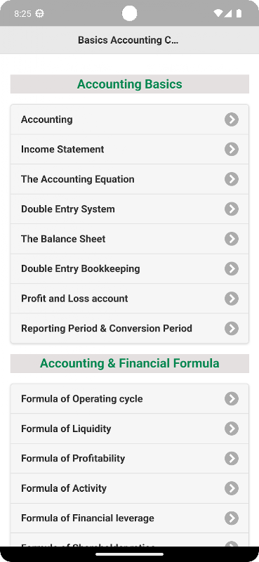 La contabilità è il processo di registrazione e riepilogo delle informazioni finanziarie in modo utile. È il processo di registrazione, misurazione e comunicazione sistematiche di informazioni sulle transazioni finanziarie. In questa app, sarai in grado di imparare le basi della contabilità. Tutto organizzato per capitolo, in modo da poter trovare facilmente quello che stai cercando. Se stai cercando un riferimento tascabile su Contabilità, l'app Contabilità di base è qui per te.