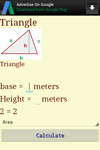 La geometria di base Consente di eseguire calcoli di base e avere a portata di mano le equazioni più importanti della geometria. Ideale per insegnanti e studenti elementari, scuole medie.